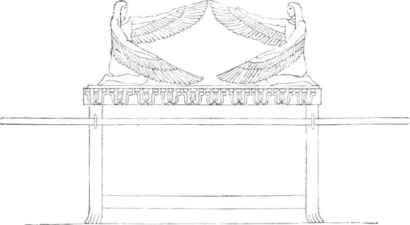 Über der Lade breiten 2 Cherube ihre Flügel aus, auf welchen der unsichtbare Gott selber thronend gedacht ist (1 Sa. 4,4; 2 Sa. 6,2; Ps. 80,2). Sie sind gewissermaßen der lebendige Thron Gottes. Äußerlich analog ist es, wenn in gewissen ägypt. Tempeln das heiligste Gesetz unter den Füßen der Götterstatue im innersten Heiligtum gefunden worden ist. Die Bundeslade wird demgemäß als Fußschemel des auf den Schwingen der Cherube sitzenden Gottes gedacht sein.
