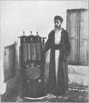 Die Samariter haben sich bis heute in ihrer Eigenart erhalten. Sie sind ganz auf Nabulus, das alte Sichem, beschränkt, wo sie ein eigenes Quartier haben, in Armut leben und auf 175 (1904) zusammengeschmolzen sind. Bei der kleinen Zahl, namentlich des weiblichen Nachwuchses, ist eine rasche Verminderung zu befürchten. Aber ihre Eigentümlichkeit halten sie mit zähem Konservatismus fest. Sie sind strenge Monotheisten, der Bilderverehrung und allen anthropomorphistischen Ausdrücken feind, glauben an Engel, böse Geister, Auferstehung, erwarten einen Messias (Taheb, der Bekehrer), der 6000 Jahre nach Erschaffung der Welt erscheinen, die Völker zum wahren Glauben bekehren und dann neben dem Garizim begraben werden wird. Nach weiteren 1000 Jahren wird das Weltgericht folgen. Sie feiern die Feste 3 Mo. 23, halten das Gebot der Beschneidung ein, verpflichten nicht den Bruder, sondern den nächsten Freund des kinderlos Verstorbenen zur Heirat mit der Witwe. Immer noch setzen sie ihre Wallfahrten fort zu dem heiligen Berge der Väter (s. Abb. 298); sie haben einen levitischen Priester (Kahin), Abb. 299, den man nicht Hohepriester nennen darf, da die von Aaron stammende Priesterlinie 1658 ausgestorben ist. Sie beobachten streng die Gebote des Pentateuchs, den sie in hebräischer Sprache, aber in einer älteren Schrift, übrigens auch in einer samaritanischen Übersetzung besitzen. Außer dem Pentateuch besitzen sie noch eine kleinere Literatur, teils in samaritan. Sprache, einem Dialekt des Westaramäischen, teils in arabischer Sprache. Das „Samaritanische“ ist als Umgangssprache längst durch das Arabische ersetzt.