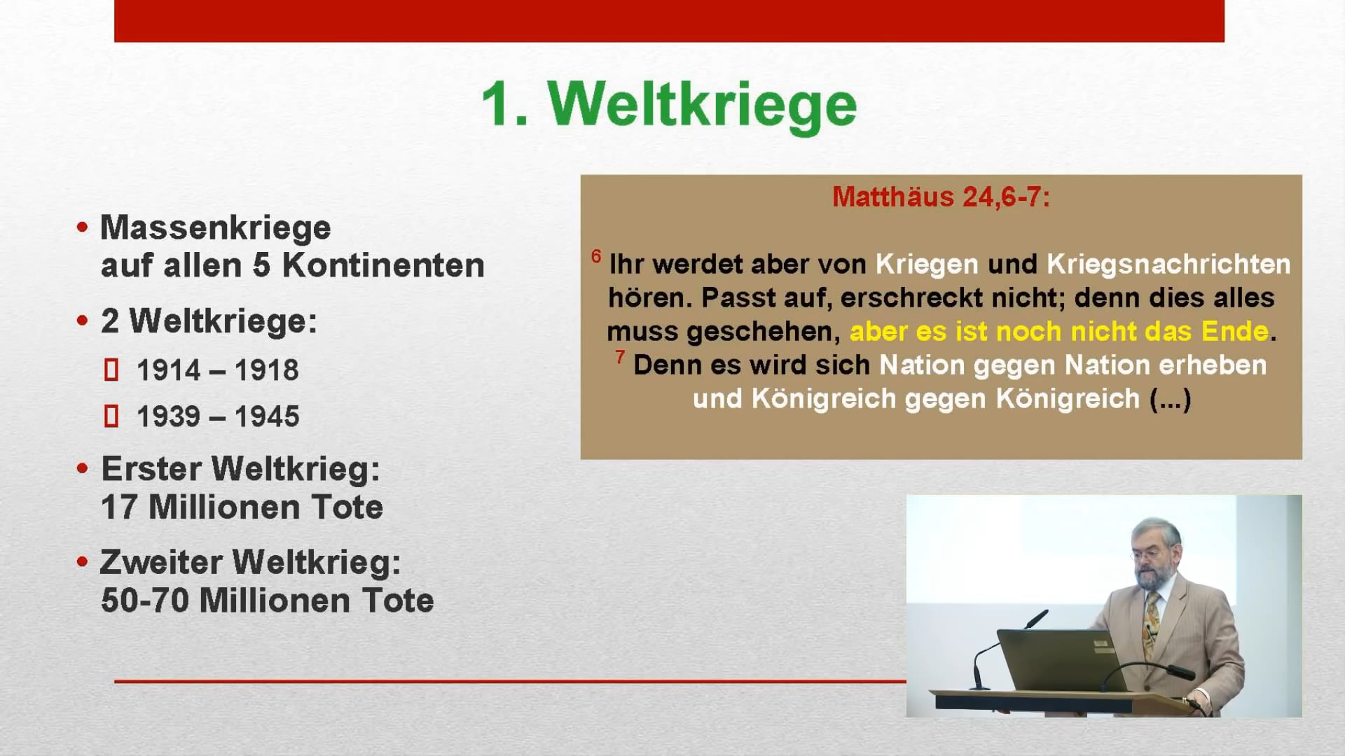 Der Erste Weltkrieg war ein ganz klares Zeichen der Endzeit, aber noch nicht das Ende. Die große Drangsal ist auch für uns heute noch zukünftig.