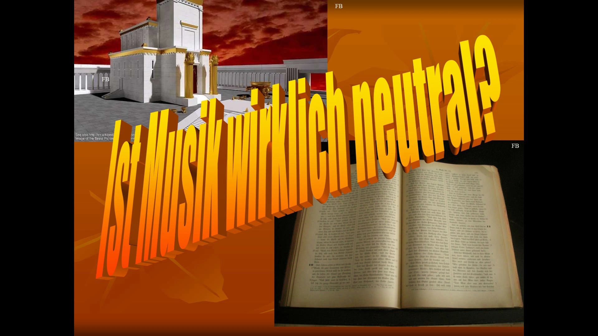 Ich möchte alle ganz herzlich zu diesem Bibelstudientag begrüßen. Das Thema ist sehr wichtig und aktuell: Ist Musik neutral? Die Überfremdung der christlichen Gemeinden durch heidnische Musik.